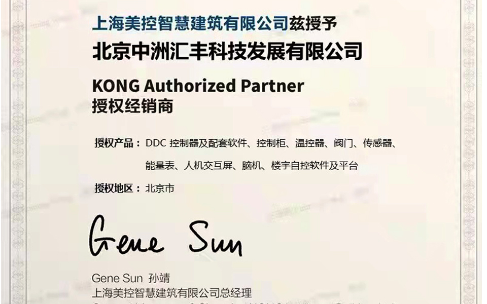 - 中洲匯豐榮獲上海美控2023年美控設備授權經銷售商2023-3-23