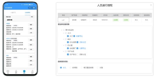 管理員可通過(guò)微信、H5移動(dòng)端、Web端設(shè)置外來(lái)人員的通行權(quán)限,訪客審批后,相關(guān)權(quán)限自動(dòng)下發(fā)到聯(lián)動(dòng)的門禁控制器上,支持通行權(quán)限的修改,同時(shí)支持添加黑白人員名單。