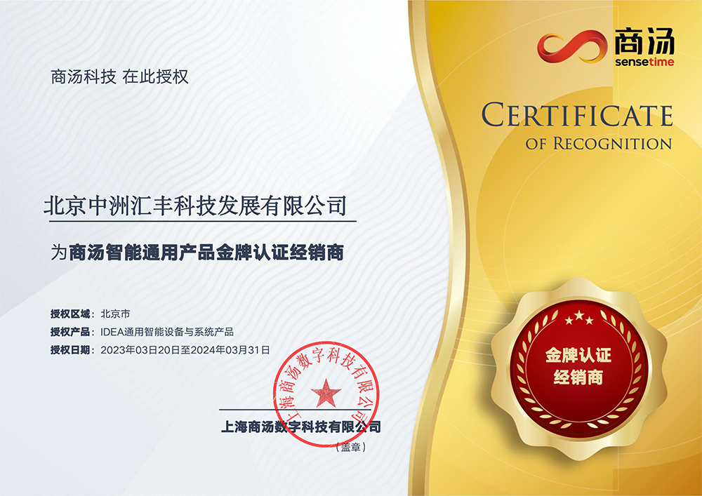 商湯智能通用產(chǎn)品金牌認(rèn)證經(jīng)銷商稱號不僅是對中洲匯豐的肯定,更是對我們的激勵!
