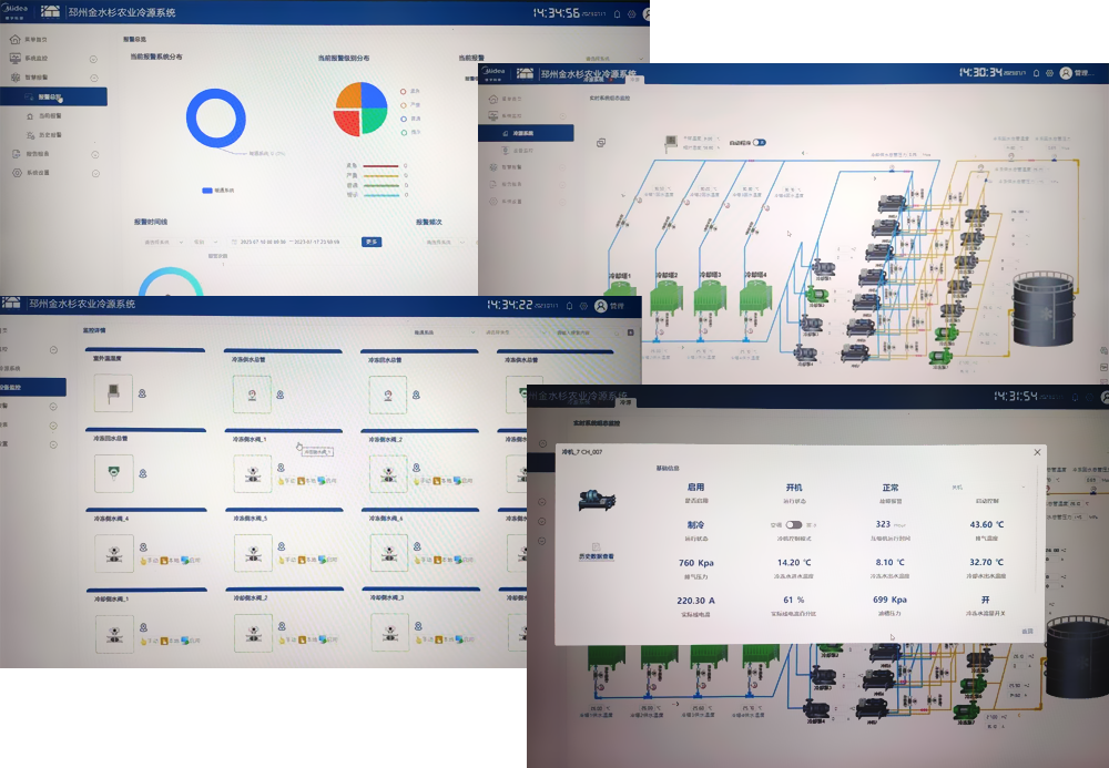 現場監控建筑設備由以下組成: 約克冷機設備7臺、冷卻水泵4臺、冷凍水泵7臺、冷卻塔4座、大型蓄水罐2座以及相應的閥門、水道壓力傳感器、水道溫度傳感器、室外溫濕度傳感器等前沿高品質認證設備。